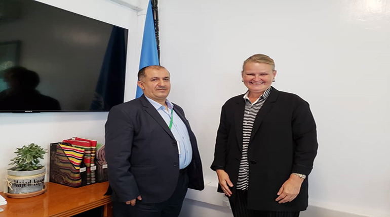 التقى الشيخ عبدالعزيز العقاب رئيس منظمة فكر للحوار والدفاع عن الحقوق والحريات بالسيدة ليزا غراندي منسقة الأمم المتحدة للشؤون الإنسانية في اليمن في مقر الأمم المتحدة بصنعاء.